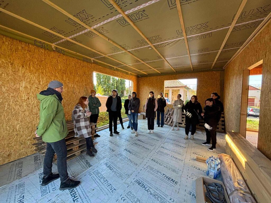 A bejárás során nemcsak az épület aktuális állapotát mutattuk be, hanem részletesen beszélgettünk azokról a természetes alapanyagokról és szerkezeti megoldásokról, amelyekkel a Platánplán dolgozik. A hallgatók felkészültsége és kérdései mély szakmai érdeklődésről árulkodtak, a beszélgetés pedig valóban inspiráló volt számunkra is.💬
